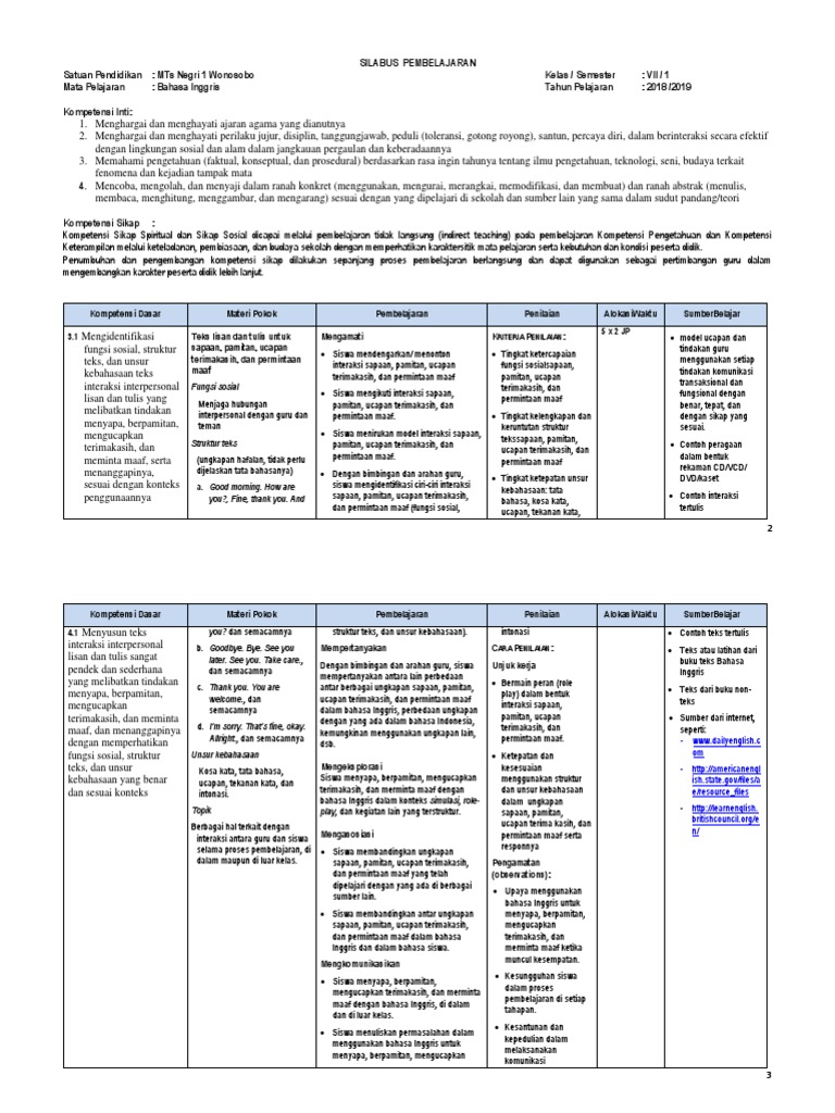 Silabus agama islam kelas 3 kurikulum 2013 revisi 2018 silabus pai kelas 3 silabus pendidikan agama islam dan budi pekerti kelas 3 k. Selamat tiba para guru semua, pada kesempatan ini, kami akan bagikan file. Bapak dan ibu guru hanya perlu memilih silabus yang. Silabus adalah penjabaran dari standar kompetensi dan kompetensi dasarke dalam materi pokok/pembelajaran, kegiatan pembelajaran, dan indikatorpencapaian. Silabus k13 kelas 1 revisi 2019 merupakan rencana pembelajaran pada suatu kelompok mata pelajaran tertentu yang mencakup beberapa bagian, seperti: